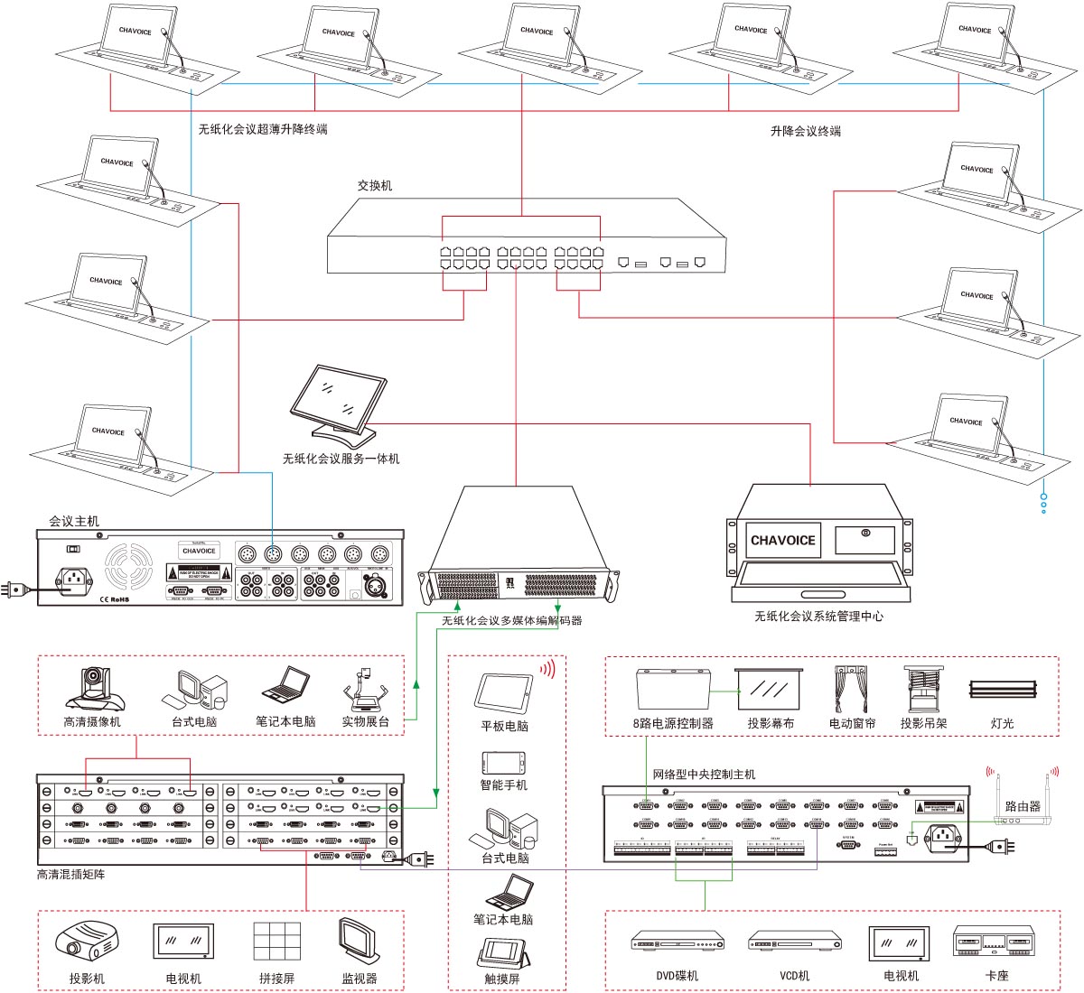 - 超薄触控高清屏与升降器采用一体式设计,无外露连接线、无连接背板、无外露螺丝,整体美观;