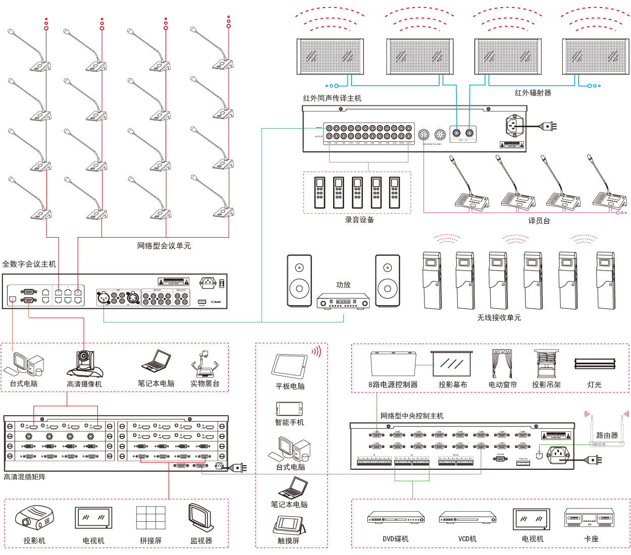 - 采用数字强抗干扰技术,确保会场内设备不受手机、蓝牙、无线电、WiFi等信号干扰;